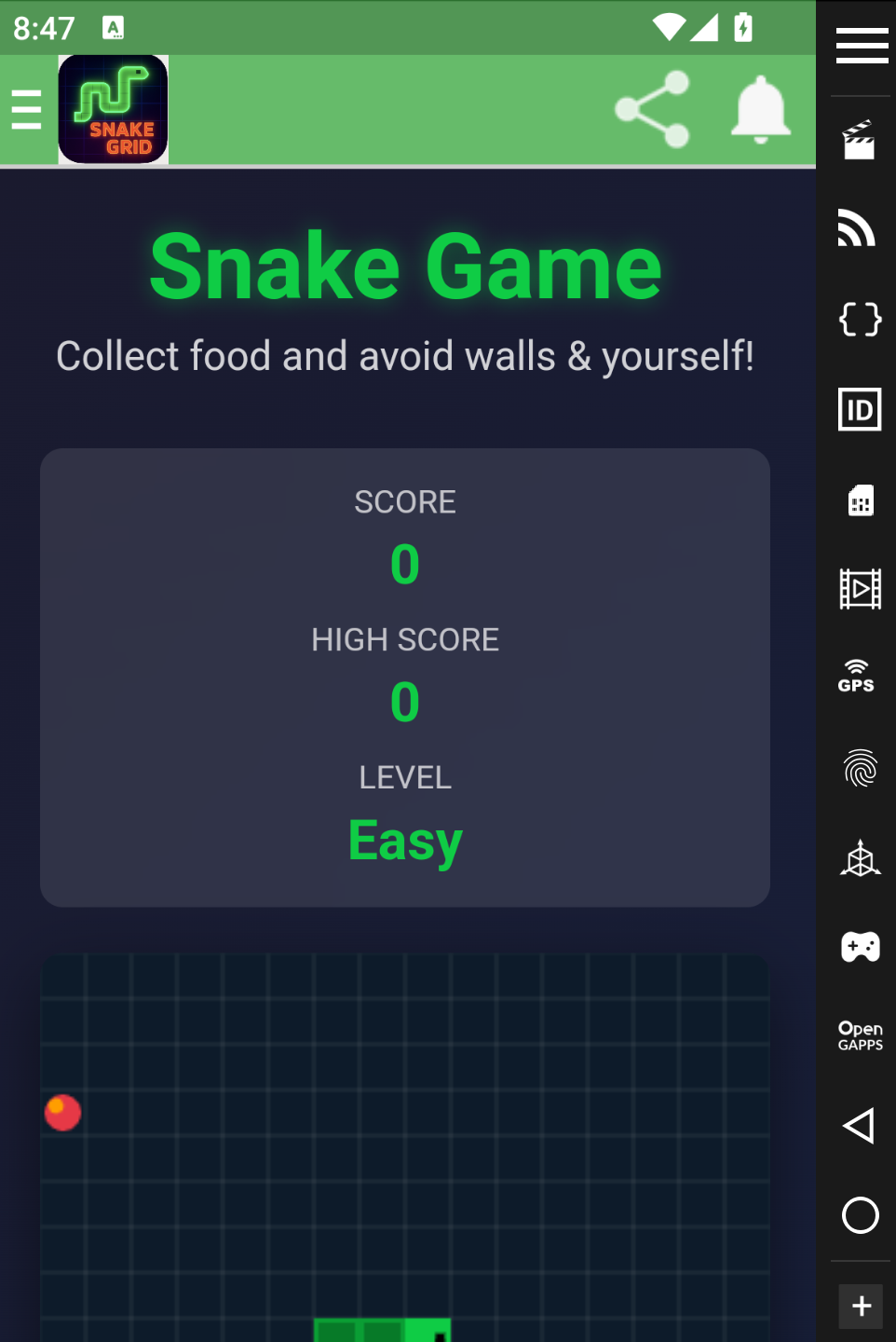 Snake Grid Arcade, a fast-paced and addictive game that brings the timeless fun of the classic Snake to a whole new level. Designed with a sleek grid style and smooth controls.Snake Grid Arcade, a fast-paced and addictive game that brings the timeless fun of the classic Snake to a whole new level. Designed with a sleek grid style and smooth controls, this game will test your reflexes, strategy, and focus through three thrilling levels — from Easy to Medium to Hard.